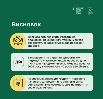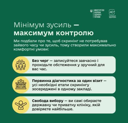З початку року в Україні стартувала програма Скринінг здоров’я 40+. Це можливість безоплатно перевірити стан свого організму та вчасно оцінити індивідуальні ризики.